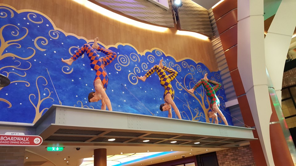 Oceanaria is an incredible Cirque du Soleil-style show with acrobatics, aerialists and high divers performing to a beautiful backdrop at the aft of the ship. The show takes place multiple times throughout the cruise and fills to capacity each showing.