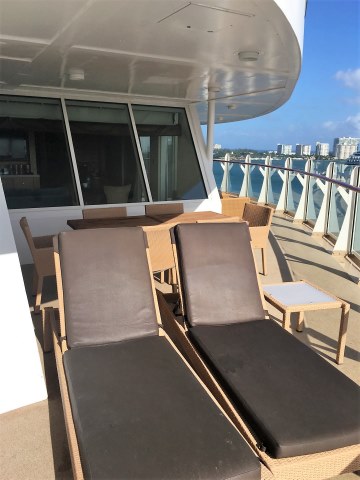Our cabin's deck was so large that it had a 6-person dining table where we enjoyed breakfast almost daily (no crowds, no getting showered and dressed early) we enjoyed a casual al fresco meal before the busy day began.